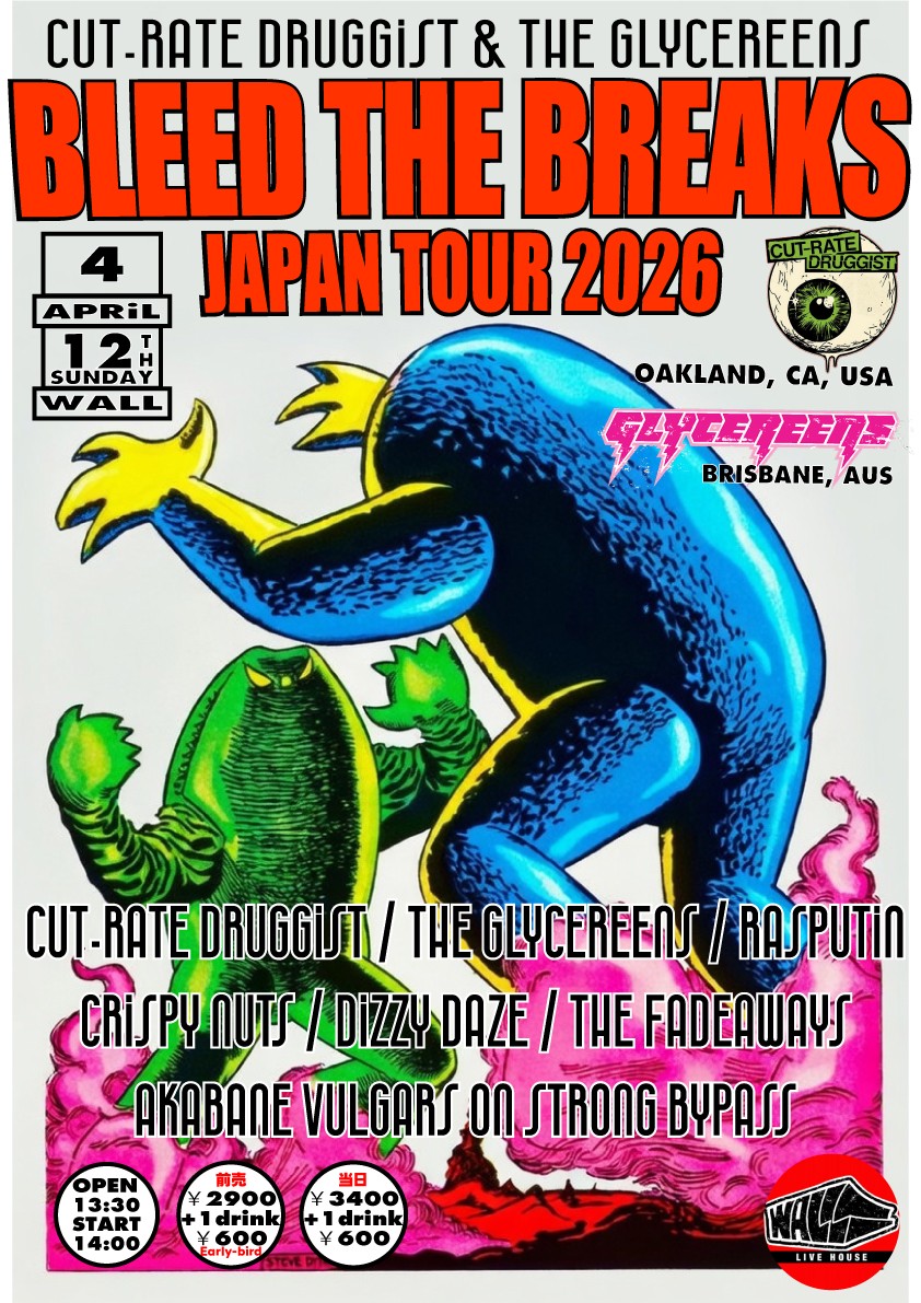 CUT-RATE DRUGGIST(Oakland, USA) / THE GLYCEREENS(Brisbane, AUS) / THE FADEAWAYS / AKABANE VULGARS ON STRONG BYPASS / DIZZY DAZE / RASPUTIN / CRISPY NUTS